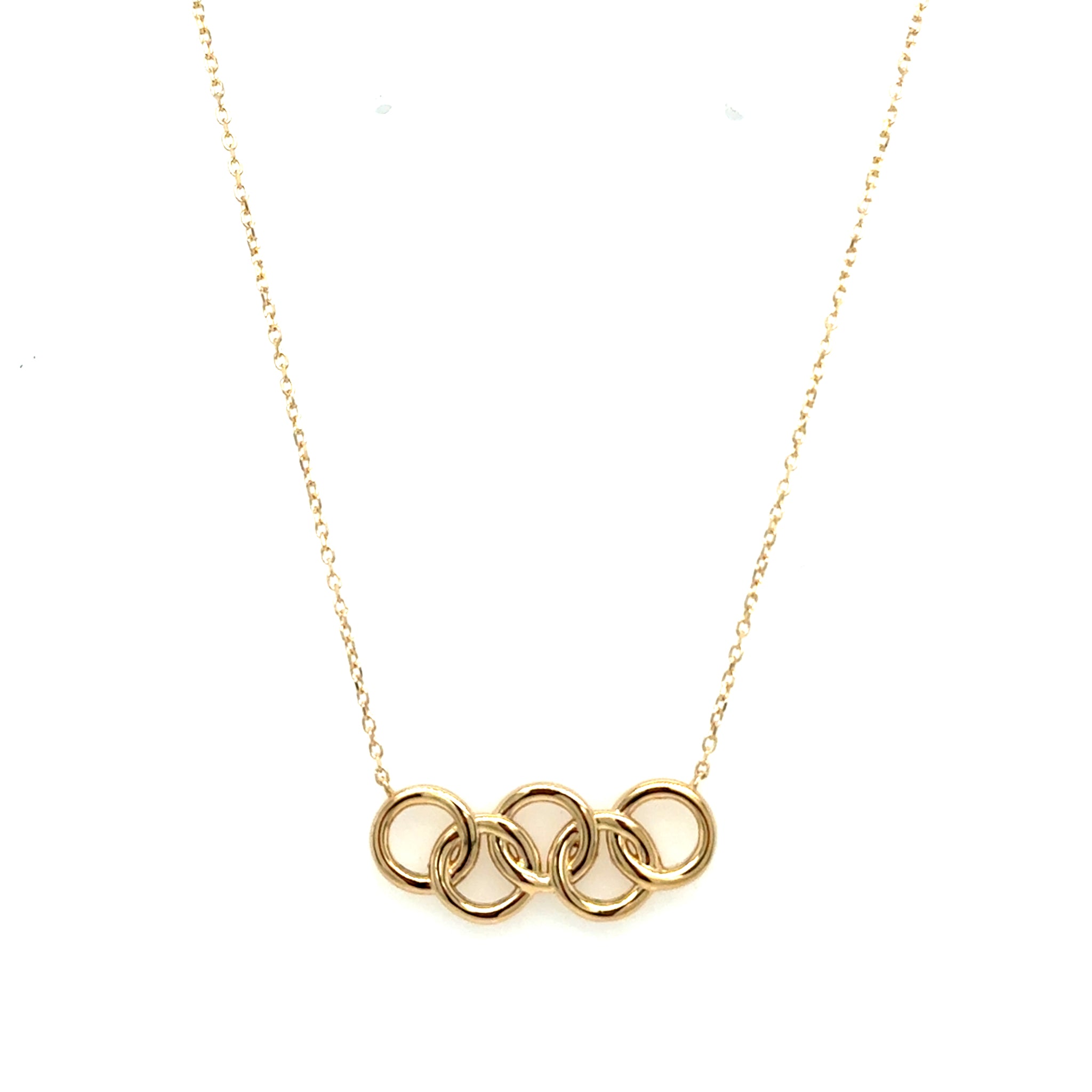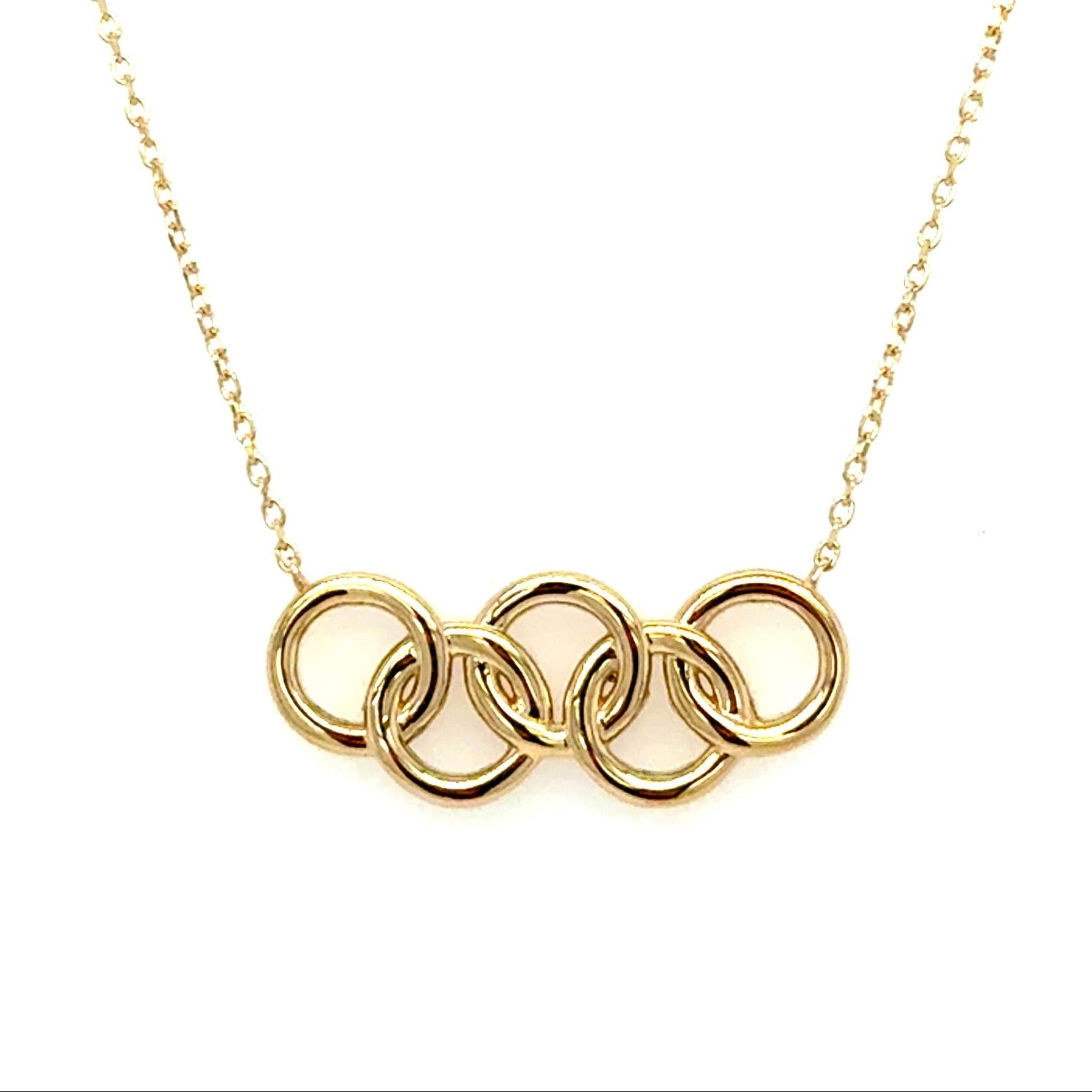 This amazing all gold Olympic Rings necklace is the perfect piece to stack on your neck or to be worn alone!