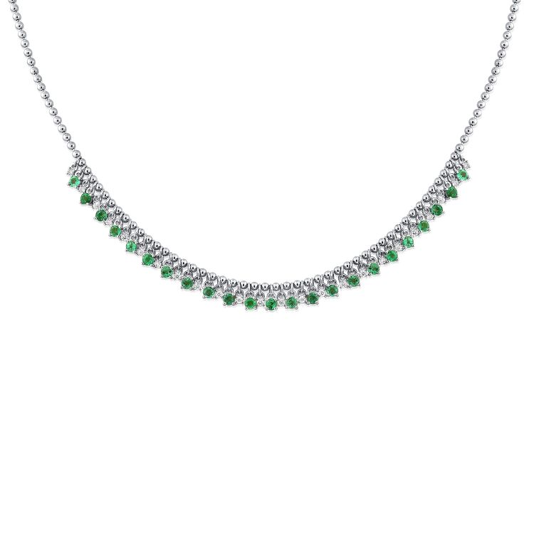 Feast your eyes on our stunning 2.93 carat Emerald and Diamond Ball Necklace! This piece is designed to make you feel utterly elegant, with vibrant green emeralds dancing alongside brilliant diamonds. It's truly versatile – dress it up for a special evening out or let it elevate your everyday look with its effortless charm. No matter your style, this necklace is sure to become your new favorite go-to for adding that perfect touch of luxury.