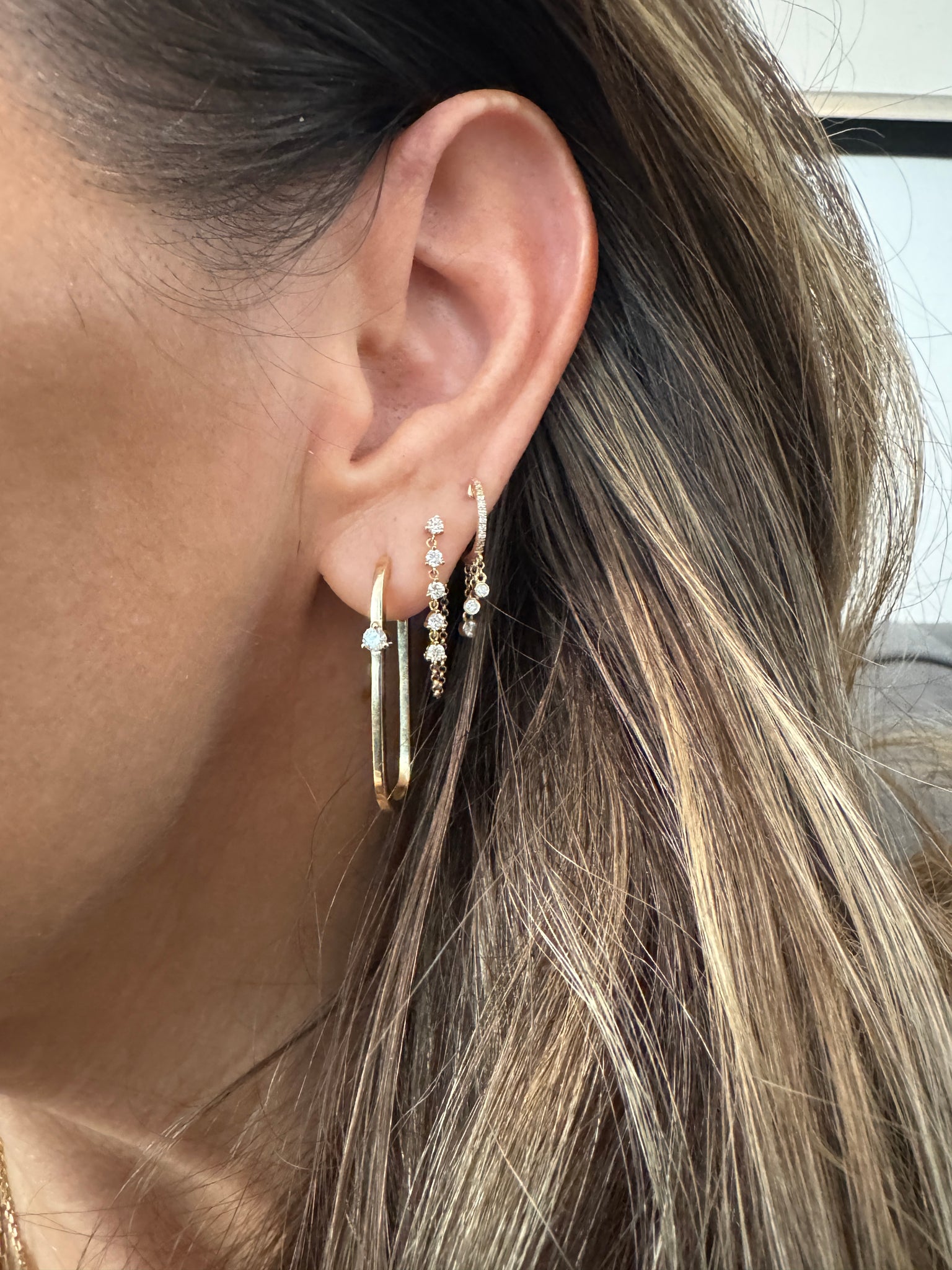 Our Trio Dangle Huggies bring a soft, elegant movement with their triple-drop design. Chic, delicate, and versatile — ideal for adding a little glam to both casual and dressed-up looks.