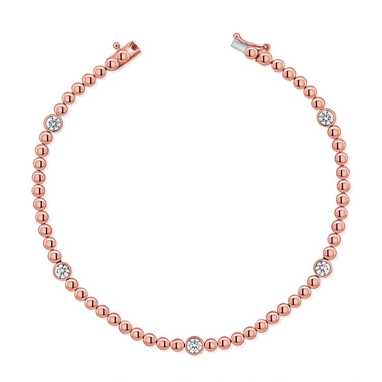 Check out this gem! It's a gold beaded bracelet with these neat, 0.62ct bezel-set diamonds sprinkled around. Super easygoing, just adds a nice bit of glint as you go about your day. Definitely a cool piece to have hanging out on your wrist.