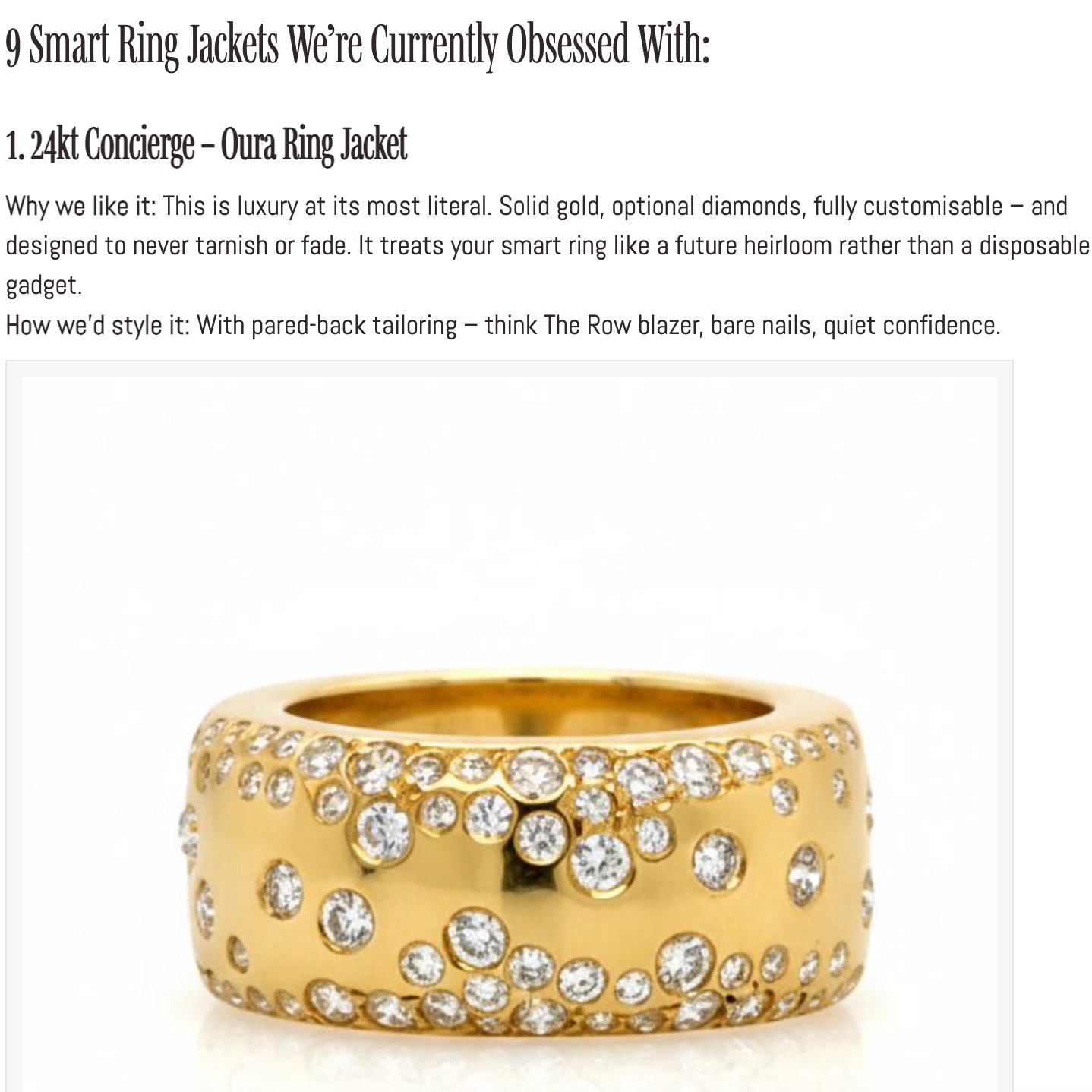 Designed by 24kt Concierge, this smart ring accessory transforms every day wellness technology into a timeless statement piece crafted from real gold and diamonds.